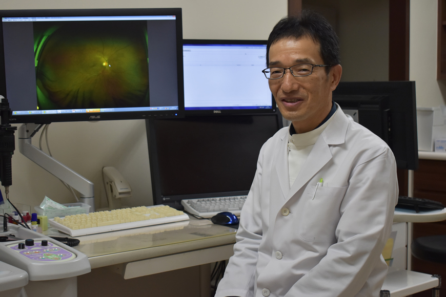 糖尿病網膜症 糖尿病網膜症は糖尿病の合併症で、腎症や神経症とともに三大合併症の一つです。 糖尿病では全身の血管障害が起きますが、網膜の血管も障害され、進行すると失明する可能性が大きくなります。厚生労働省の調査(2015年)では、視覚障害原因の第1位が緑内障、第2位が網膜色素変性症、第3位が糖尿病網膜症でした。糖尿病と診断されたら定期的に眼底検査を受けて、糖尿病網膜症の早期発見、早期治療が非常に大切です。 網膜血管障害の進行の程度で、①単純糖尿病網膜症、②増殖前糖尿病網膜症、③増殖糖尿病網膜症の3つの病期に分類されます。①単純糖尿病網膜症は初期の段階で、軽度の網膜出血や網膜白斑がみられ、血糖コントロールを厳格に行うことで改善もできますが、血糖コントロールが不良であれば②増殖前糖尿病網膜症へと進行します。 ②増殖前糖尿病網膜症は、網膜の毛細血管が閉塞して網膜が虚血状態になった状態です。③増殖糖尿病網膜症は、網膜の虚血状態が進行して、新生血管と呼ばれる非常にもろい血管が増殖した状態で、新生血管が破綻して硝子体出血や網膜剥離が起きて、放置すると失明する可能性が高くなります。 いずれの病期でも、網膜の中心部である黄斑部に黄斑浮腫が起きることがあり、黄斑浮腫が起きると視力低下をきたします。また、網膜虚血が広範囲であると血管新生緑内障になる場合があり、失明の危険性が非常に高くなります。治療は、血糖コントロールや血圧コントロールの内科的治療に加えて、眼科的には網膜光凝固術、硝子体手術、抗VEGF(Vascular Endothelial Growth Factor:抗血管内皮増殖因子)薬硝子体注射を、病状に応じて行います。